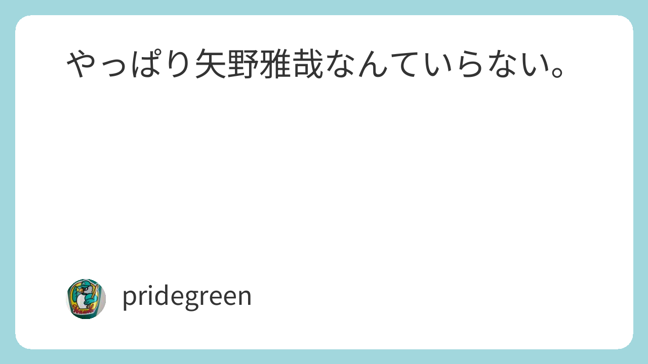 矢野とバカープファンは未だに重大な勘違いを犯しているところだが、今や守るだけのレギュラーなんて不必要なのだ。矢野がレギュラーになりたれば、真摯に野球と向き合って近本ほど打てる選手になるしかない。そのプロセスをショートカットしようとするのであれば、もう矢野はカープから消えてなくなるべきだ。