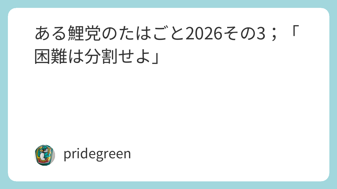 ある鯉党のたはごと2026その3;「困難は分割せよ」