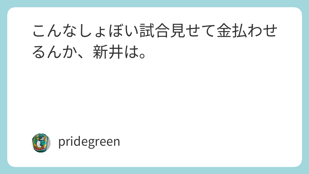 話を戻すと、今日の敗北は新井の采配ミスと言って過言ではない。前述の奨成の送りバントでライアンくんをむざむざ助けたのもそうだが、場面場面の選手のセレクトが全部裏目に出たと言っていい。イニングイーターとして鈴木健矢を出したら炎上するわ、8回に益田武尚を送ったら自滅するわ、7回の勝負どころで代打に1000%期待できない渡邉悠斗を送ってみたりと、全部ダメダメだった。