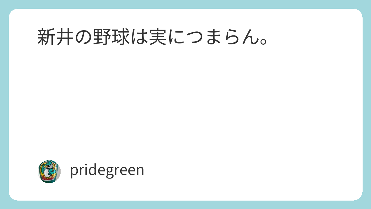 勝ち負けは時の運もあるからその事自体をどうこうはいいたくない。しかし、今日はただひとこと、つまらん野球やりやがって、ふざけんなとしか言えない。どのみちハジメから指令でたんだろ?勝ちすぎるな、ほどほどに負けろって。それはさ… 続きを読む こんなしょぼい試合見せて金払わせるんか、新井は。