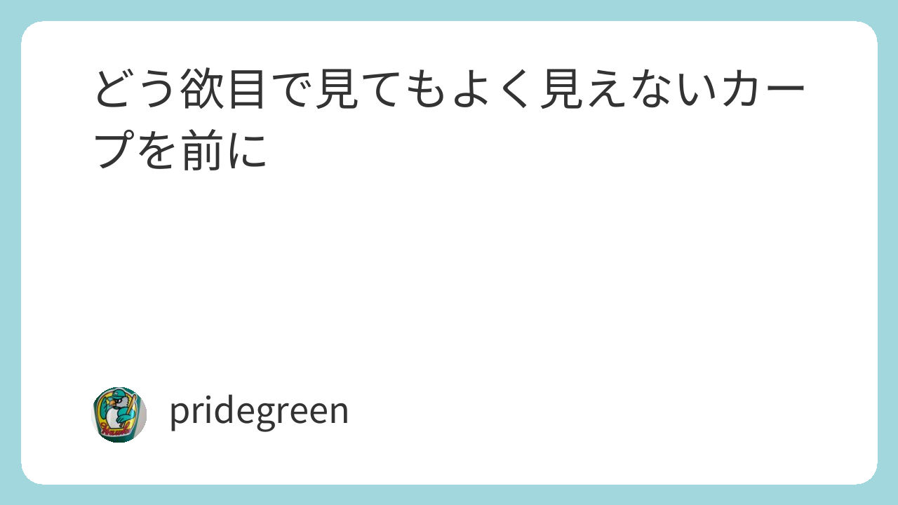 バカープファンはきっとホークス相手にいい試合をしたね、惜しかったねと傷をなめ合っているに違いないが、アホかとしか言えない。まったく惜しくない。序盤からそれなりに点が取れてもおかしくなかった、そもそも3点止まりだったという… 続きを読む カープはファンをなめとんか。