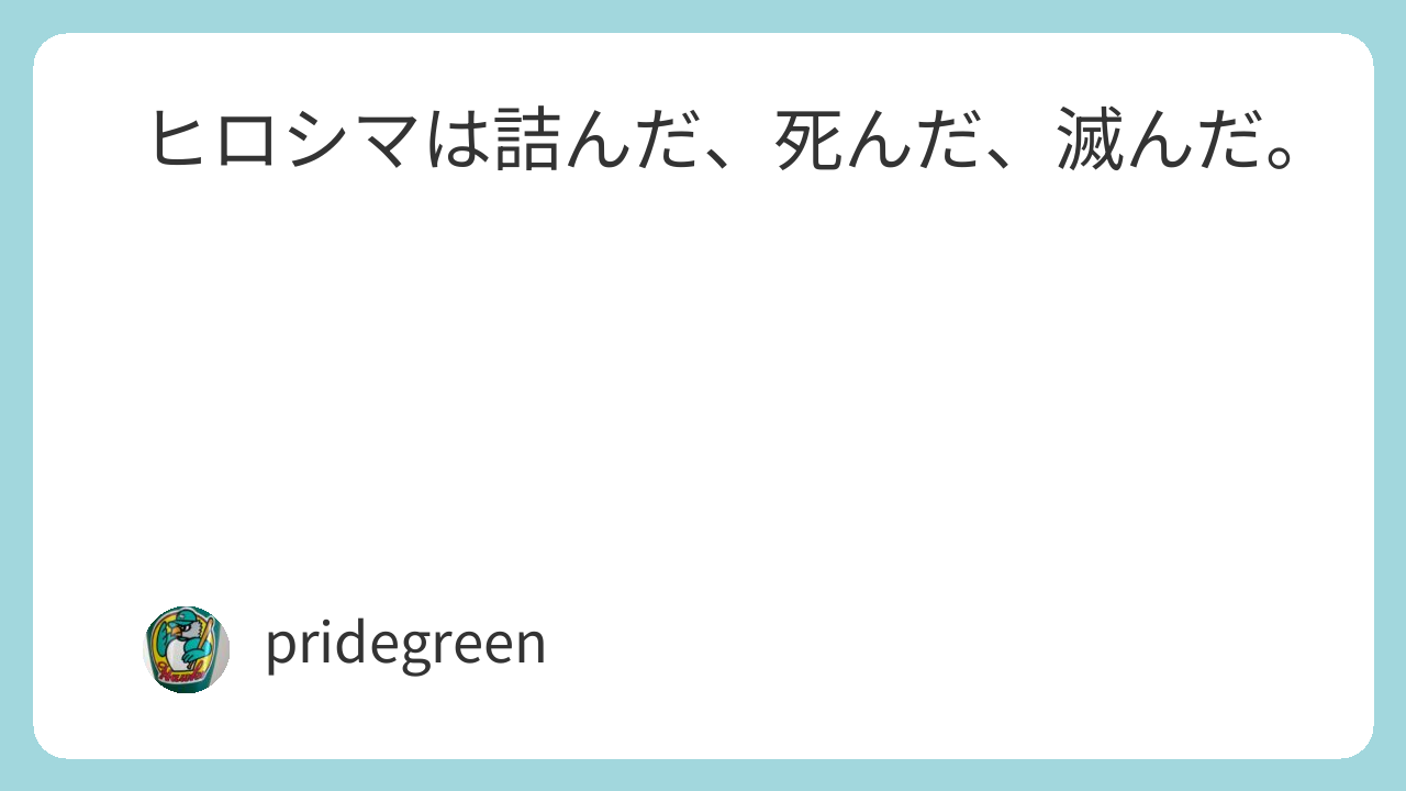 私は1989年4月に居を構えてから通算30年広島市民をやっている。しかし、つらつらと今思うことは標題のとおりである。広島は死んだ、それ以上でも以下でもない。私は広島には一宿一飯の恩義こそあれ、骨を埋める気はさらさらない。… 続きを読む ヒロシマは詰んだ、死んだ、滅んだ。