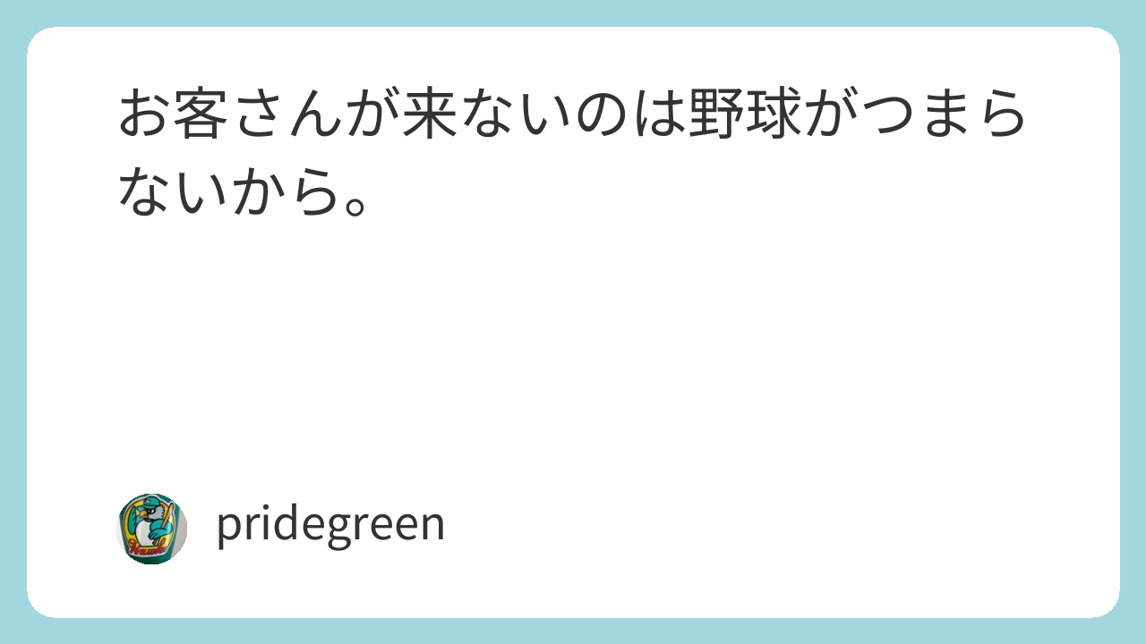 明日からカープにとってはひとつの鬼門がある。ジャイアンツがどうこうではない。別にジャイアンツなんて勝てない相手ではない。鬼門というのは平日ナイトゲームの集客力である。事実、明日からのジャイアンツ戦、砂かぶり席とか特別なシ… 続きを読む お客さんが来ないのは野球がつまらないから。